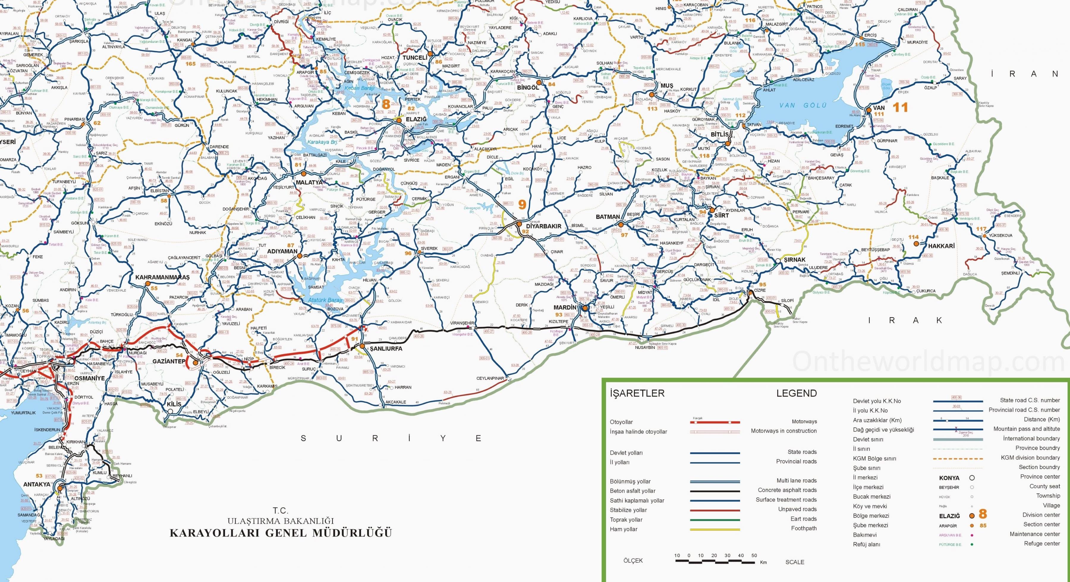 Map of southeast Turkey. Southeast Turkey map (Western Asia - Asia) to print. Southeast Turkey map (Western Asia - Asia) to download. Southeast Turkey is the northern extension of the Syrian plain (map), which means it is hot and flat. Unlike most of Eastern Turkey, the southeast is not mountainous, but rather an arid plateau at around 600 meters (2000 feet) elevation as its shown in southeast Turkey map. The region is more or less bounded by those great historic rivers, the Tigris (Dicle)to the east and the Euphrates (Fırat) to the west (maps). Many of the people here are Turkish citizens of Kurdish descent. The region was a crossroads of civilizations in Biblical times, and even earlier. The Patriarch Abraham lived for a time in Harran, south of Şanlıurfa. Urfa, as it’s commonly called, has a rock promontory at its center crowned with an ancient fortress. At its foot is a sacred pool and the reputed birthplace of the Patriarch Abraham. It’s a popular place of pilgrimage for Muslims, with a fascinating bazaar and a few fine old buildings.