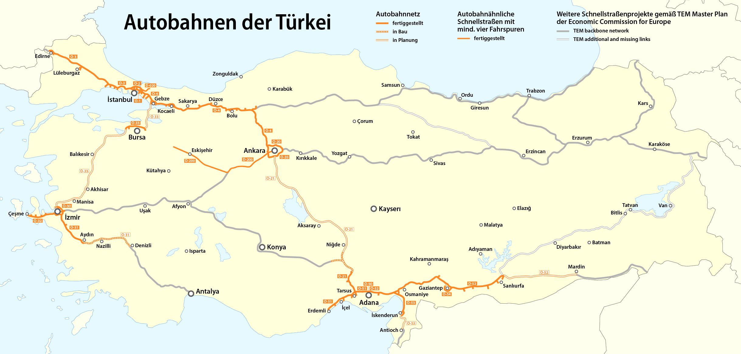 Turkey highway map