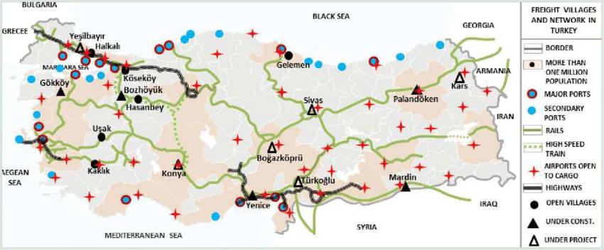 Due to its unique geographical position, improving transportion is a priority for Turkey economic and social development. In recent years, Turkey has made significant investments and legal arrangements to improve and diversify its domestic and international transportation. Air transportion is a fundamental component of Turkish Tourism, providing the vital link between tourist generating areas and destinations in Turkey as you can see in Turkey transportation map. In 2010, 68.3 percent of foreigners arriving in Turkey preferred air transport as a means of transportation. Beginning from the 1950, road transport has experienced a significant development process and now, it is considered as the dominant transport mode of Turkey.